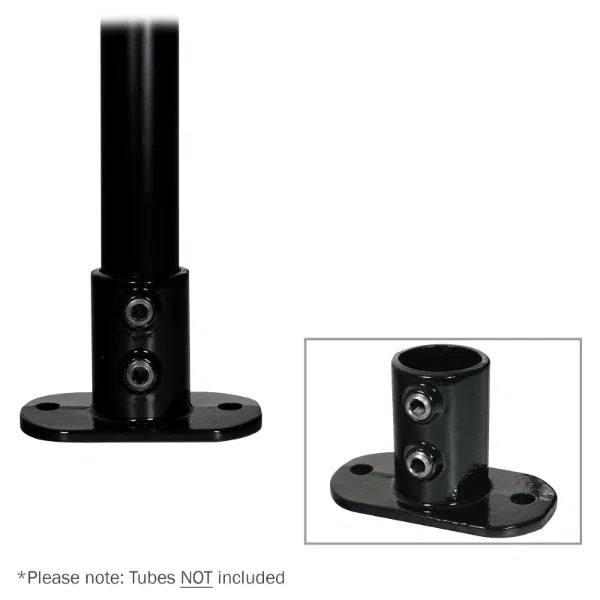 Key clamps are designed to secure and connect 48.3mmØ tubes quickly and easily. The wide range of options available enables users to create a huge variety of configurations including lighting grids, studio frames, staging and exhibitions stands. The base plate key clamp provides a structural base to support vertical posts for handrails and guardrails, it can also be secured to the ground with suitable fixings, providing more stability.