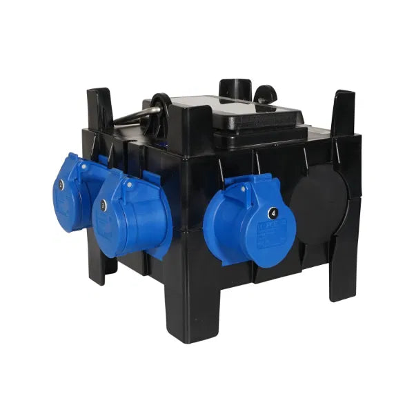 These PCE IMST 32A distribution boxes are handy, robust, lightweight and made of shock-resistant polyamide. They feature a high-grade steel folding carry handle, have stackable design and are IP44 rated.