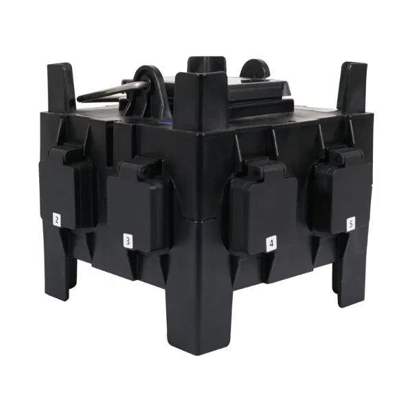 These PCE IMST 32A distribution boxes are handy, robust, lightweight and made of shock-resistant polyamide. They feature a high-grade steel folding carry handle, have stackable design and are IP44 rated.