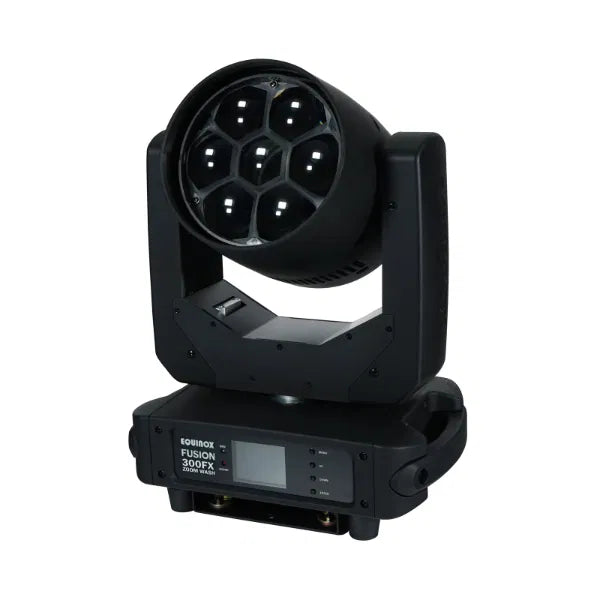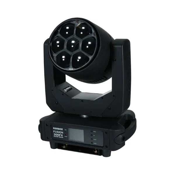 The compact Fusion 300FX Zoom Wash features 7 x 40W quad-colour LEDs (RGBW) outputting gentle pastel tones to rich saturated hues. The motorised zoom from a narrow 5 degree beam angle to a wider 40 degree paired with front-lens rotation, allows the user to create superb mid-air multibeam effects along with wide washes of colour. The fixture also features colour temperature presets, DMX, auto, sound active, manual control and master/slave modes all accessible via the onboard 4 button menu.