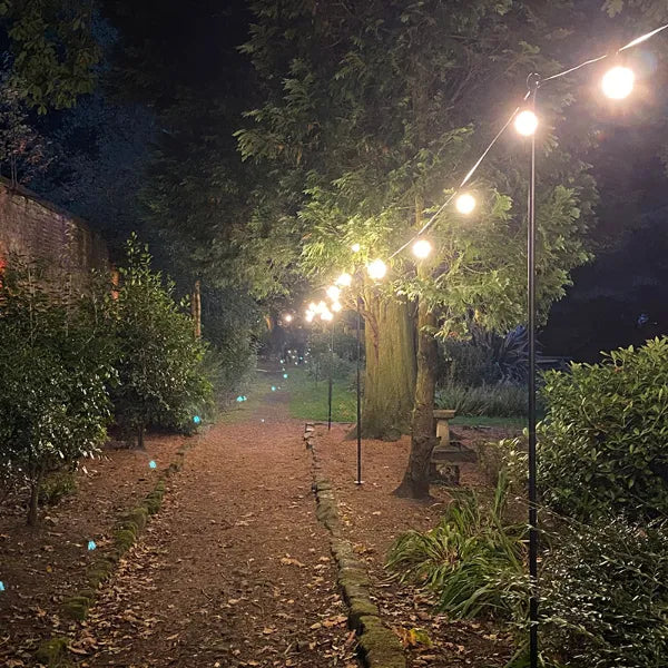 Steel festoon pole suitable for creating illuminated pathways and walkways for outdoor events and weddings. Manufactured from steel, the pole is split into two sections for ease of transportation. To assemble the pole, simply slot the two pieces togetherÿand insert into the medium to firm ground. Supplied in packs of 2.