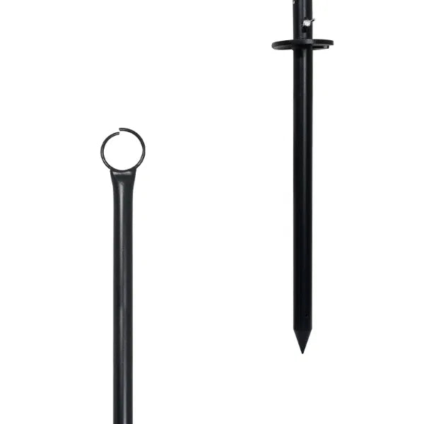 This heavy duty black steel festoon pole has a superior 3mm wall thickness providing a sturdy, reliable solution to suspending festoon strings. Suitable for creating illuminated pathways and walkways for outdoor events and weddings, this durable 3.6m pole (3m finished height) is constructed in 3 sections for ease of transportation. To assemble the pole, drive the ground spike into the ground using the festoon pole hammer cap (available separately), and then slot the upper two sections into position. Wing bolts are provided to secure the sections in place and prevent any movement when in use. The ground spike features a solid, pointed tip allowing it to be driven into firm ground.