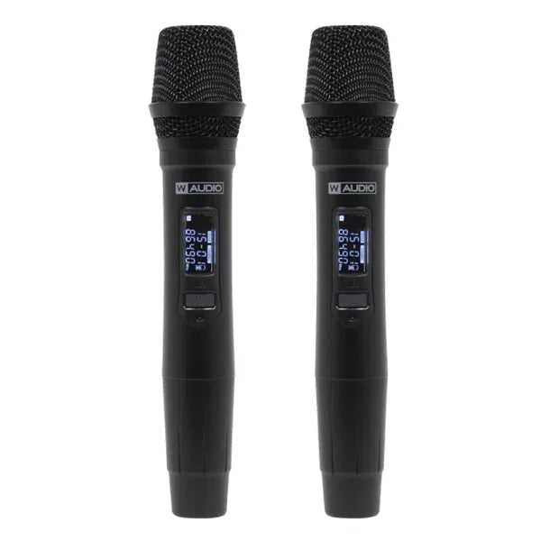 - Included in the system: 1 x receiver, 1 x audio lead, 2 x wireless microphones, 1 x USB charging mic cable and 1 x PSU