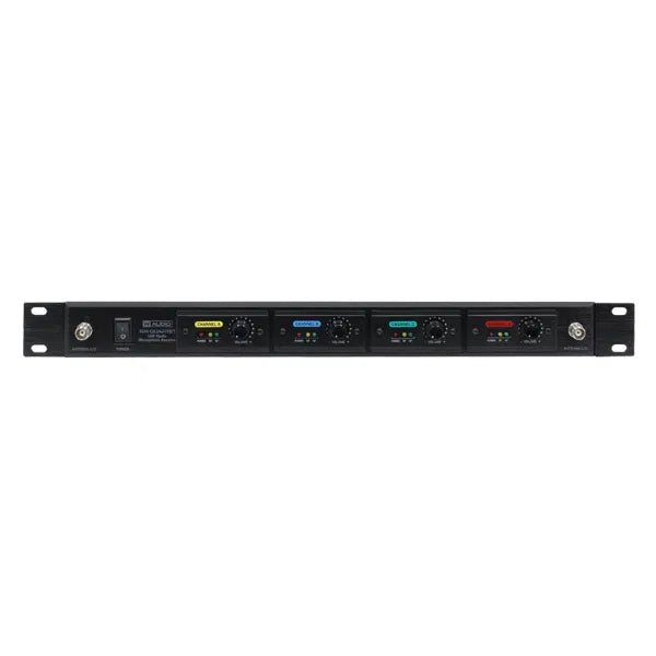 - Included in the system: 1 x receiver, 4 x wireless microphones, 1 x PSU, 2 x rack ears, 1 x USB charging mic cable and 1 x audio lead